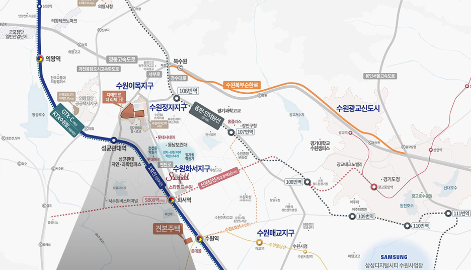 이목지구는 최근 개발이 활발히 진행되고 있는 경기권의 유망한 지역 중 하나입니다. 이 지역은 교통, 교육, 생활 편의시설 등 다양한 인프라가 잘 갖춰져 있어 주거지로서 큰 매력을 가지고 있습니다. 특히, 근처에 위치한 [동탄인덕원선(예정)과 1호선 성균관대역]와 [인근 수원스타필드 성균관대학교 롯데마트] 덕분에 생활 편리성이 매우 높은 편입니다.