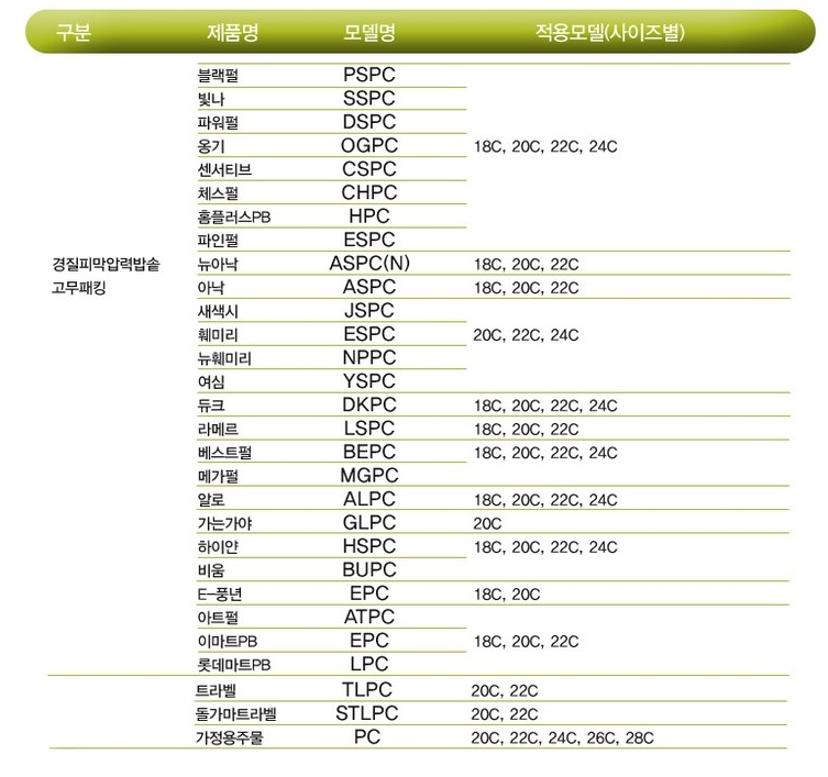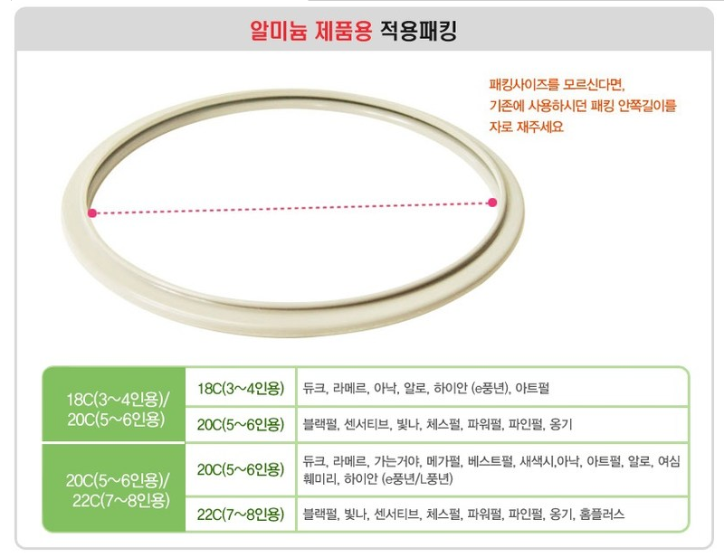 밥솥에 손잡이 부분에 보면 모델명이 나와 있습니다. 패킹의 종류가 무엇인지 확인하여 선택하는데 도움이 되시길 바랍니다.
